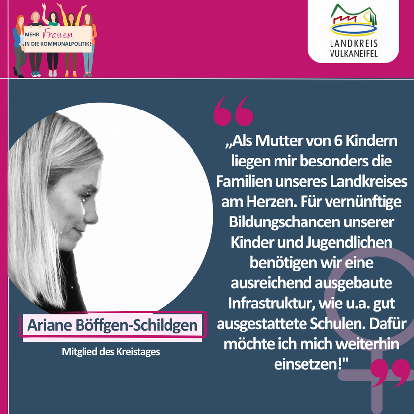 Wir freuen uns sehr, dass sich unsere Kreisvorsitzende Ariane Böffgen-Schildgen seit nunmehr 4 Jahren für die Interessen der Bürgerinnen und Bürger unseres Landkreises im Kreistag Vulkaneifel einsetzt und hoffen, dass sie ihr Engagement nach den Kommunalwahlen 2024 weiterhin fortführen darf.#landkreisvulkaneifel #mehrfrauenindiekommunalpoltik#proparität#frauenpower#uwgvulkaneifel#kommunalwahl2024