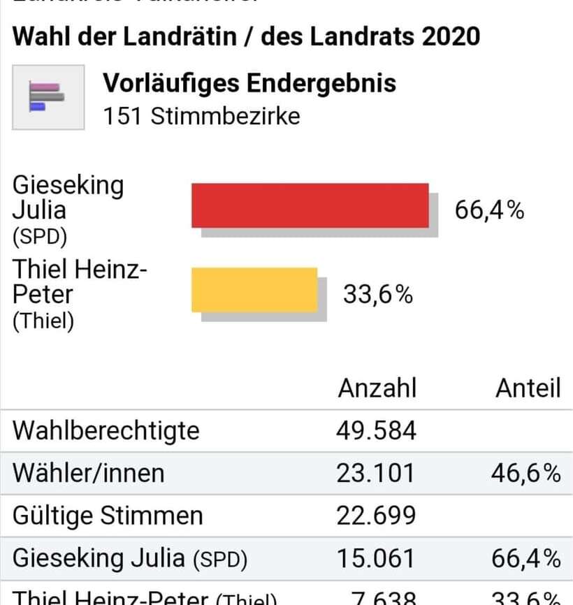 Welch ein gigantisches Wahlergebnis!!Ganz herzliche Glückwünsche an unsere erste Landrätin des Landkreises Vulkaneifel :Julia Gieseking!