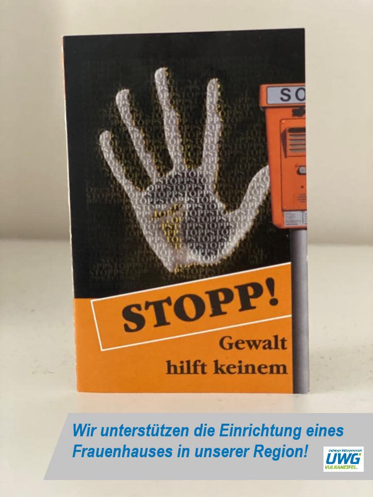 Aus diesem Grund hat sich die UWG Vulkaneifel im Kreistag für die Einrichtung eines Frauenhauses ausgesprochen.